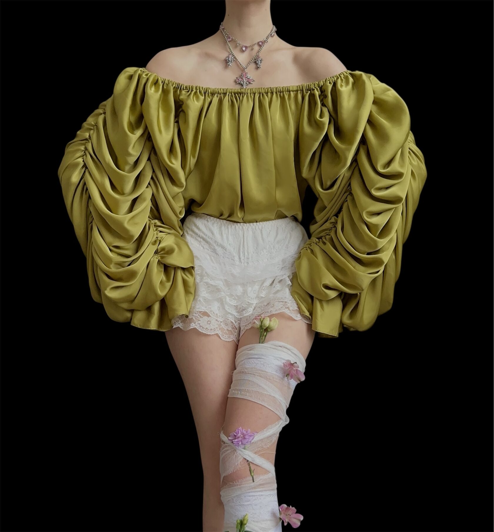 Блузы и накидки со сборками, воланами и пышными рукавами ручной работы.