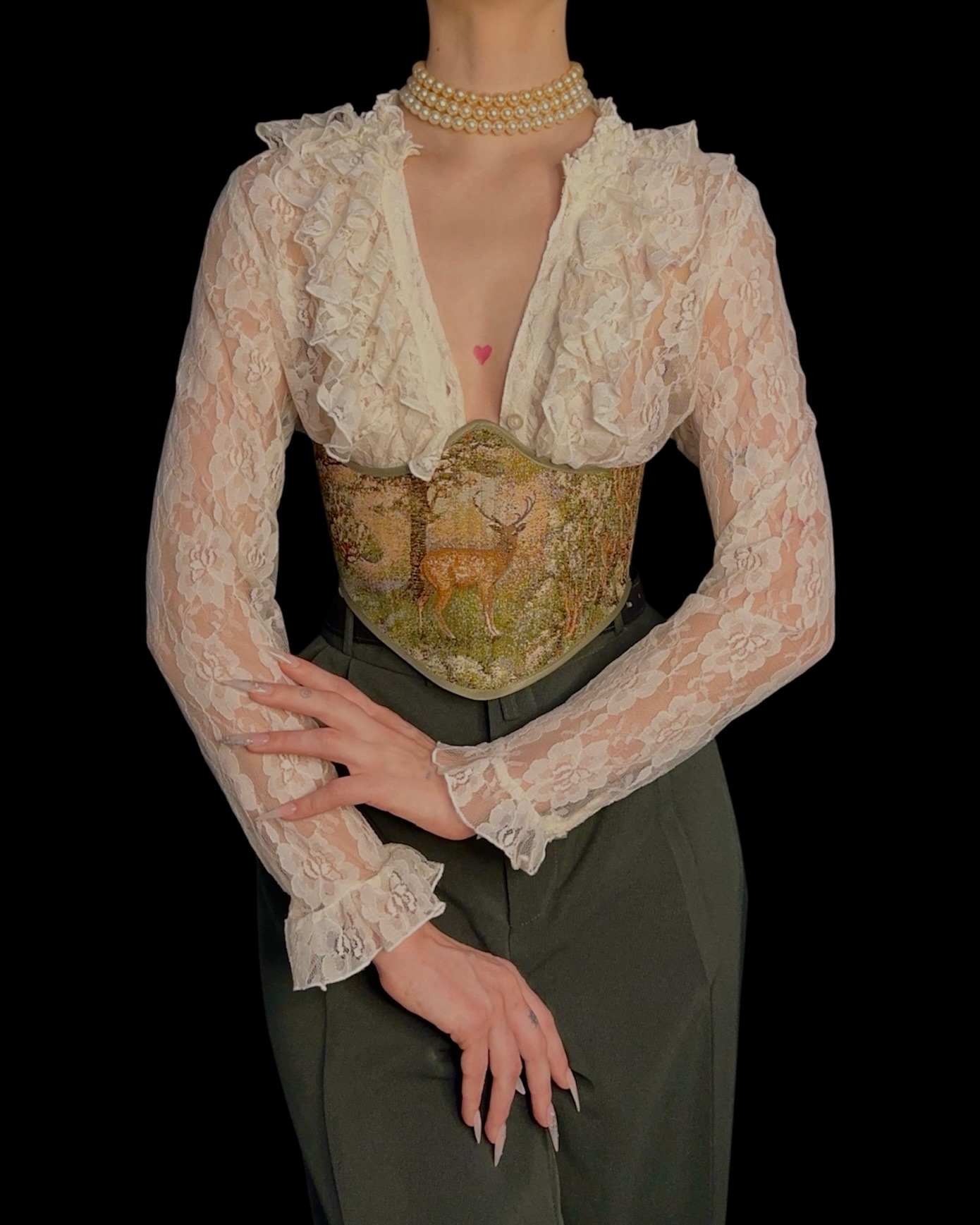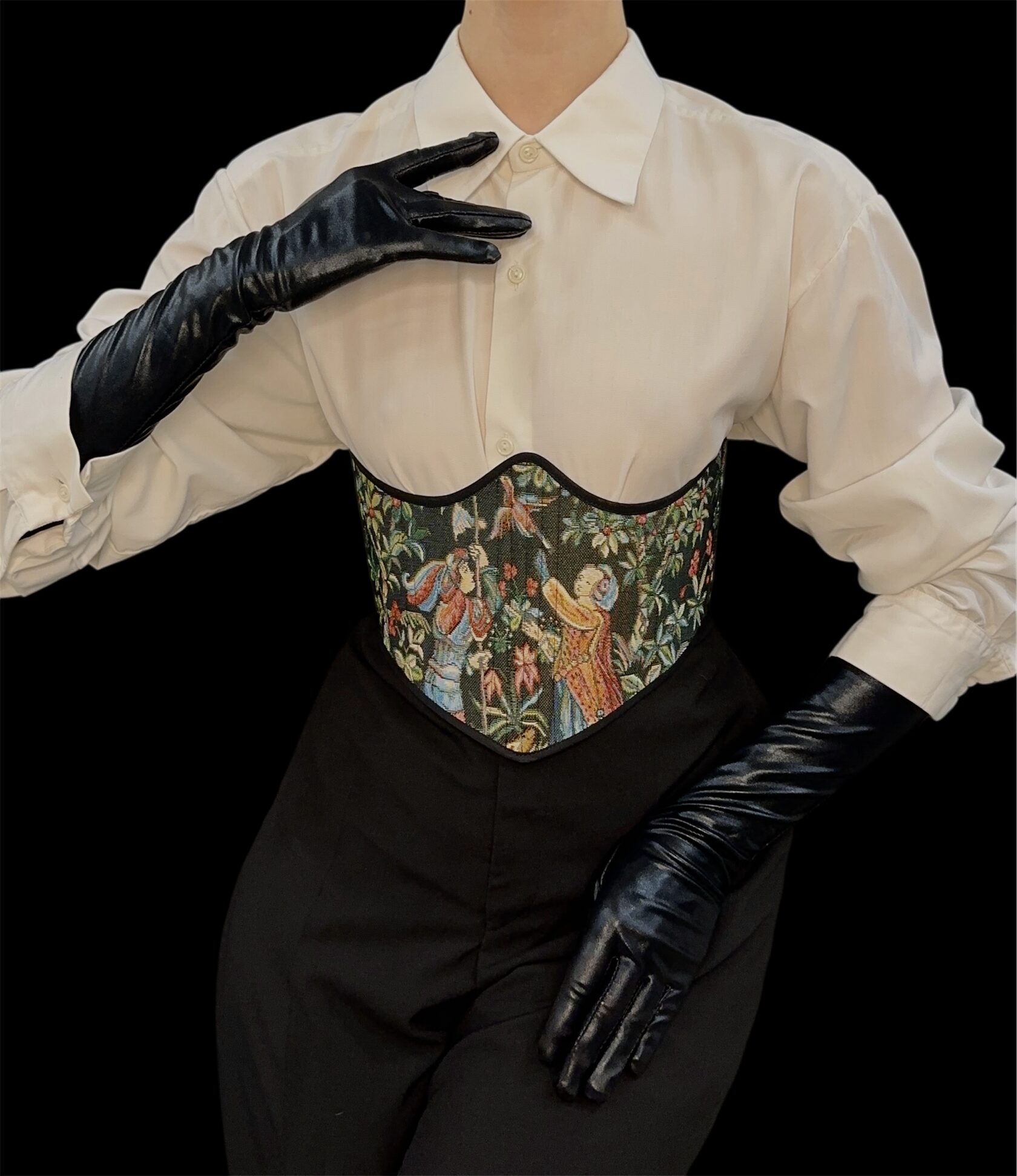 Подгрудные корсеты мы так же шьем по вашим меркам. Индивидуальный пошив доступен из любого гобелена или бархата в наличии.