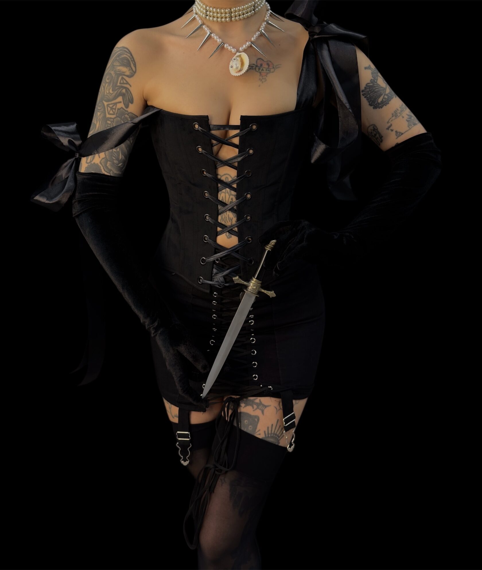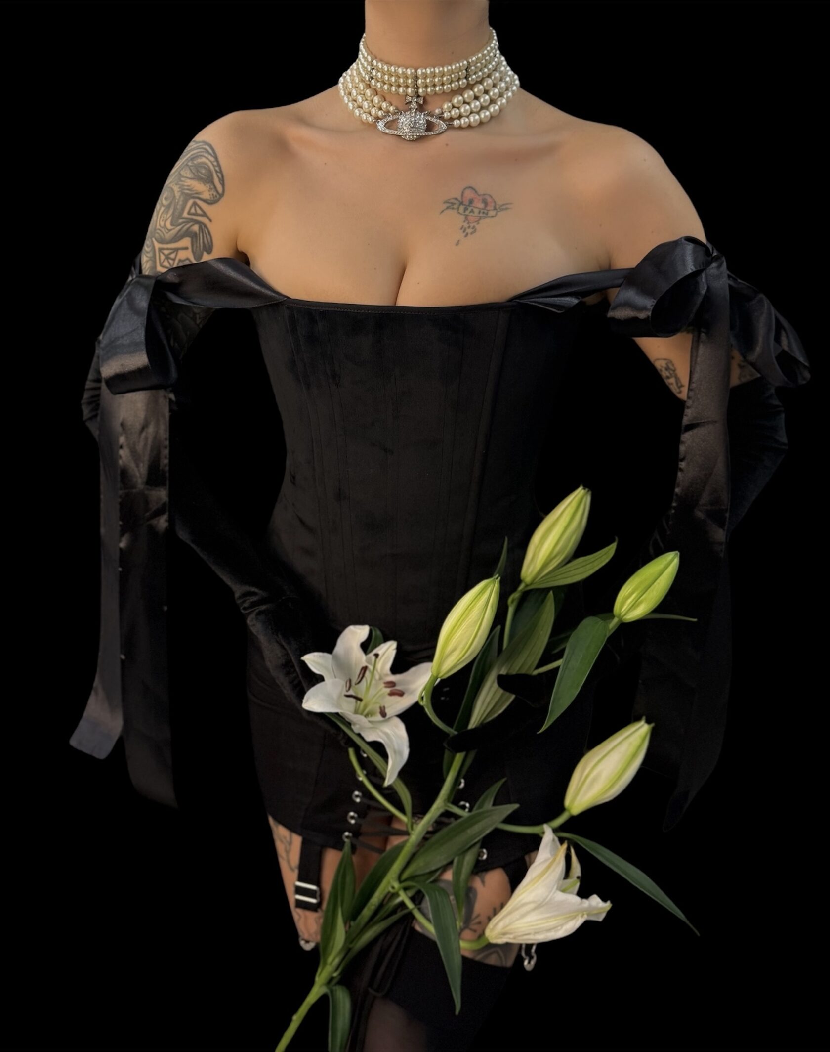 Корсет из черного бархата
