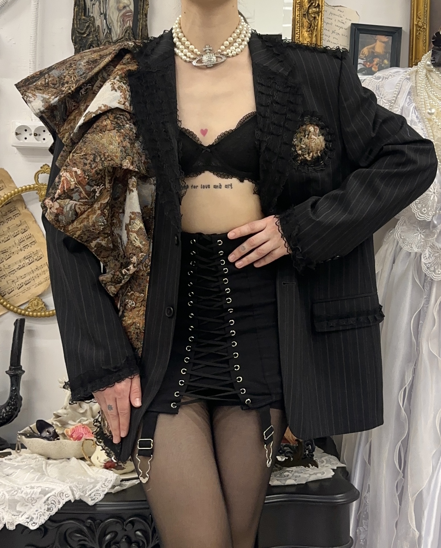 Из гобелена мы делаем не только шикарные корсеты Очень важная информация - сами пиджаки мы не шьём! Каждый пиджак уникален, неповторим, отобран вручную и прошёл все этапы необходимой обработки.