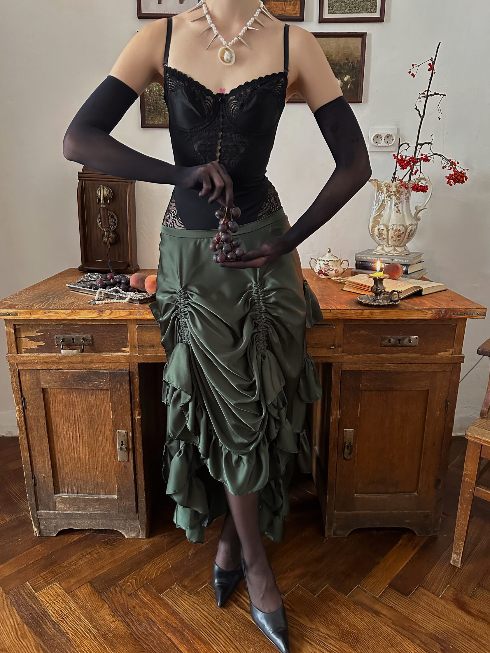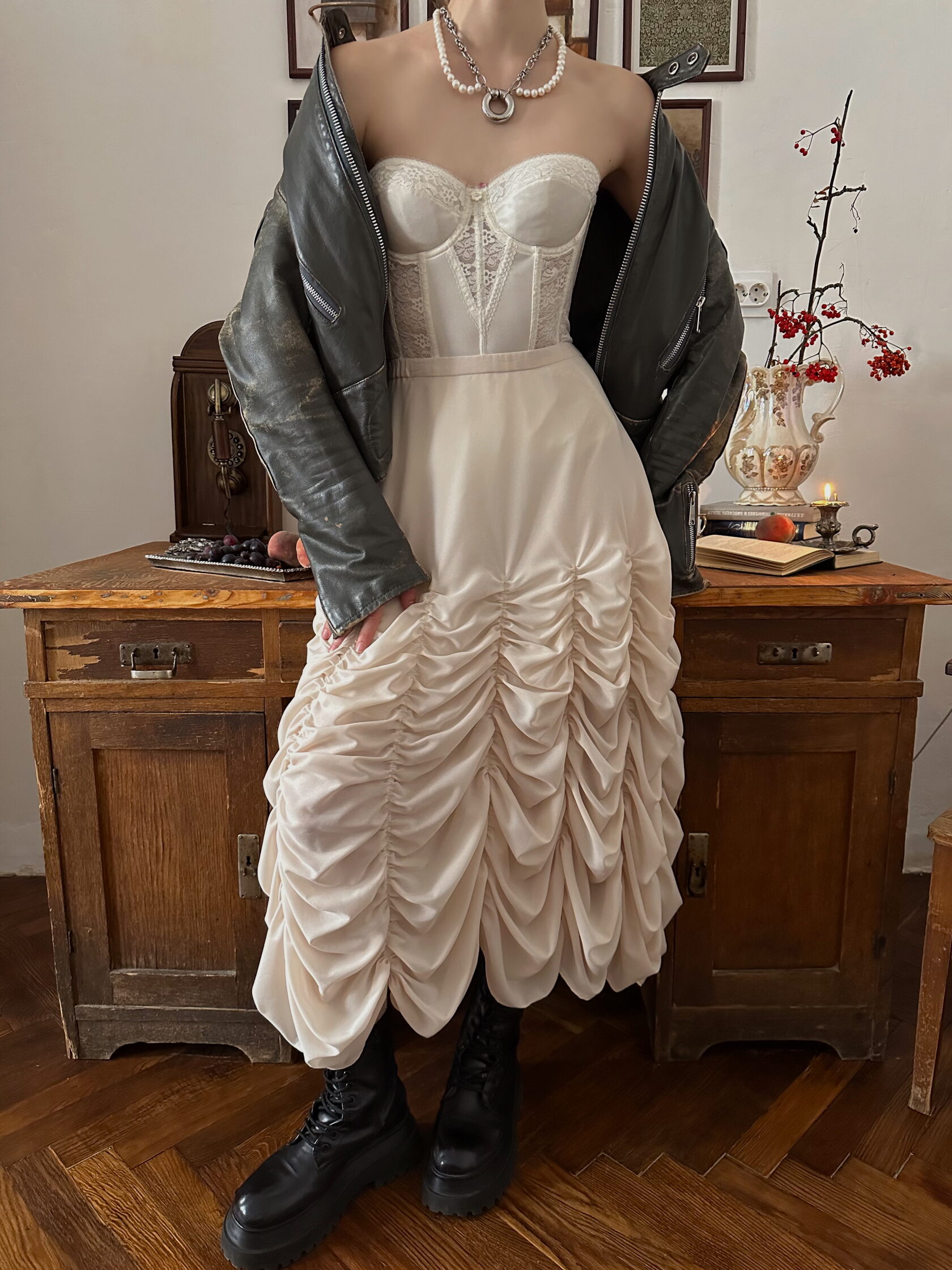 Юбка атласная со сборками