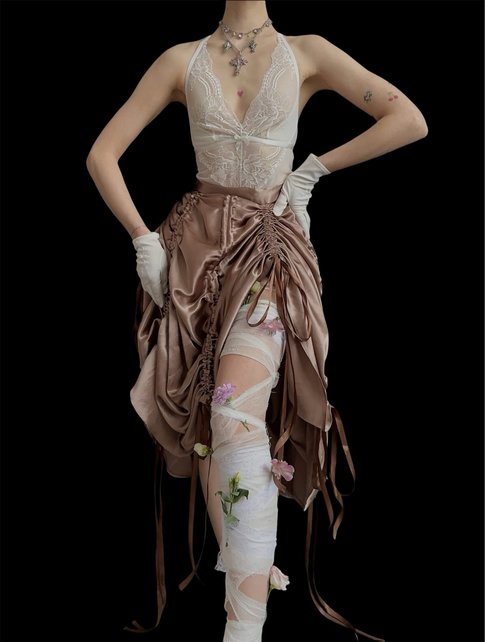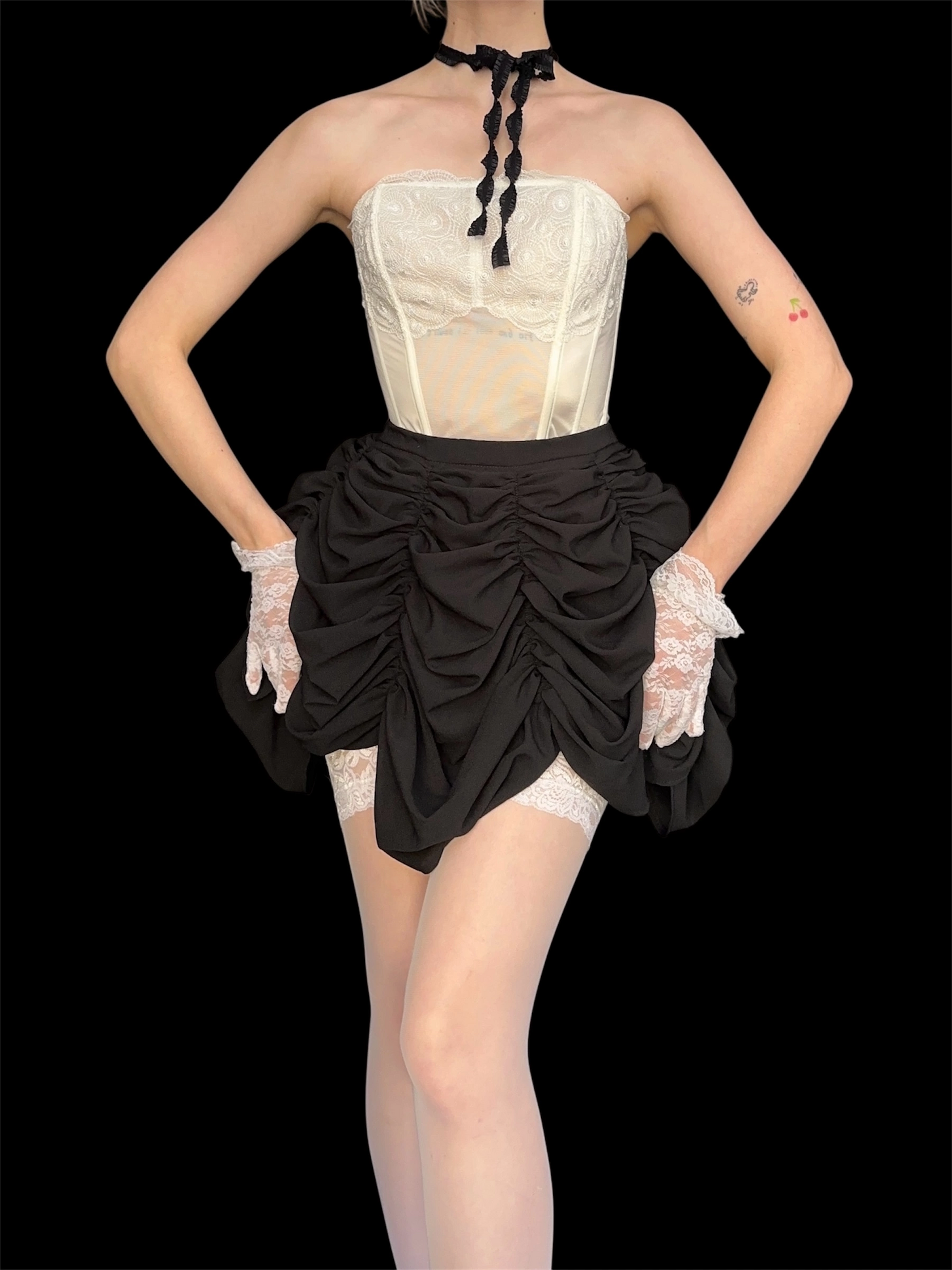 Юбка длины мини из легкого и сияющего атласа, длину сборок можно регулировать Имеется подклад, длину можно корректировать.