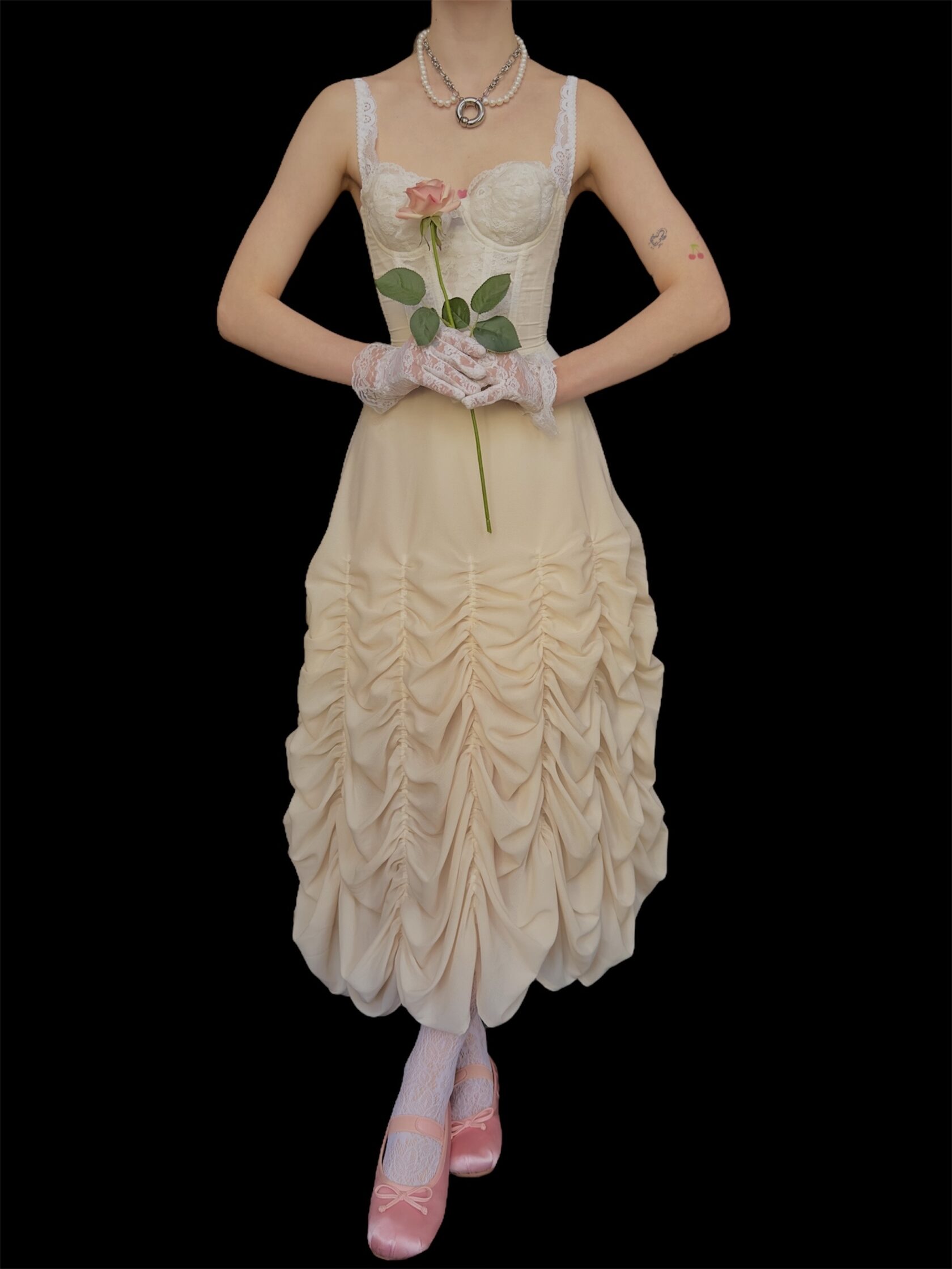 Юбка кремовая вуалевая со сборкой