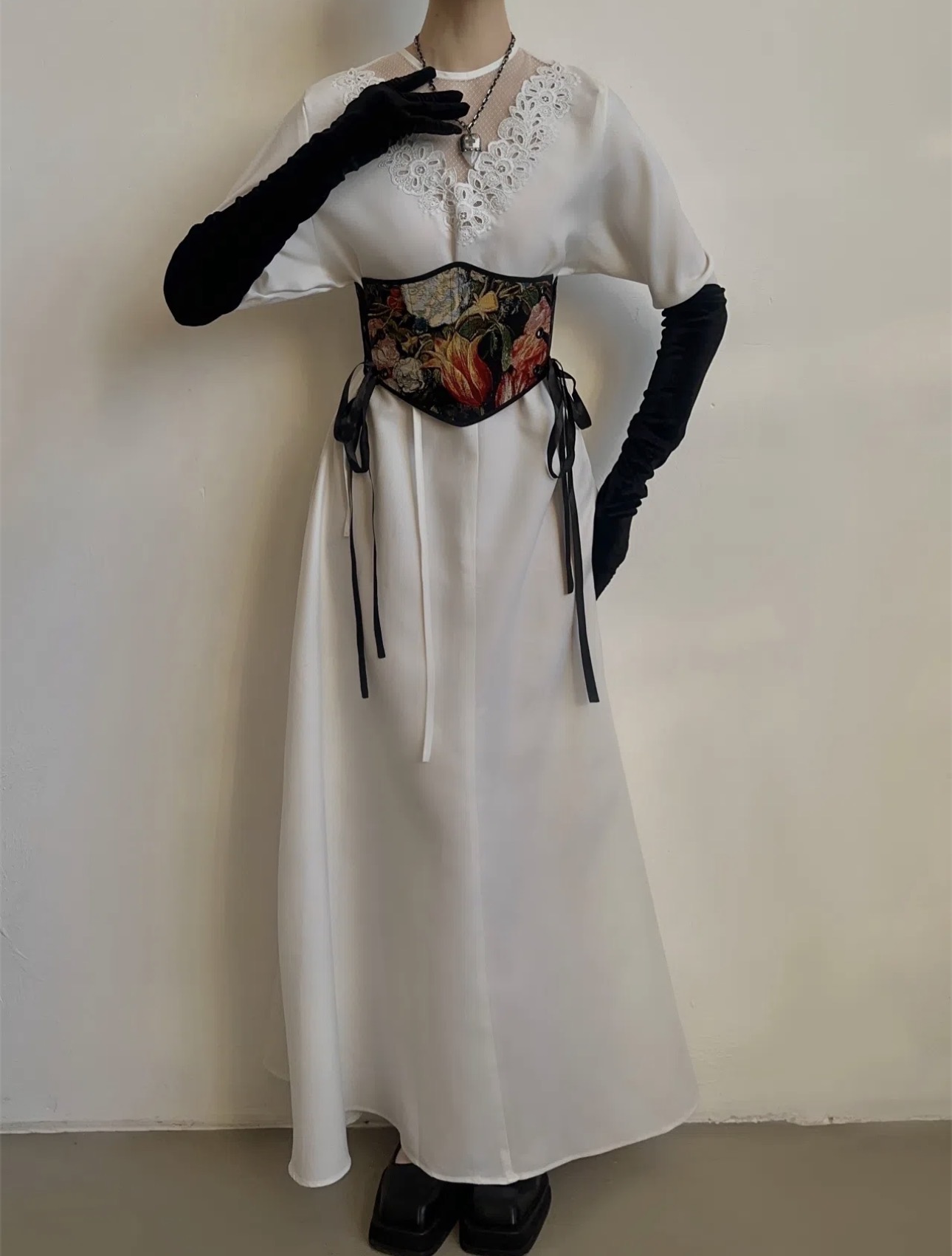 Подгрудный корсет из гобелена с боковыми шнуровками, ручная работа