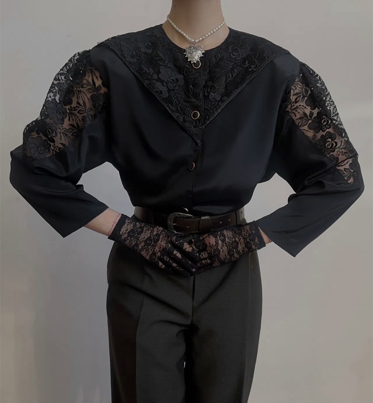 Винтажная блуза с кружевными вставками