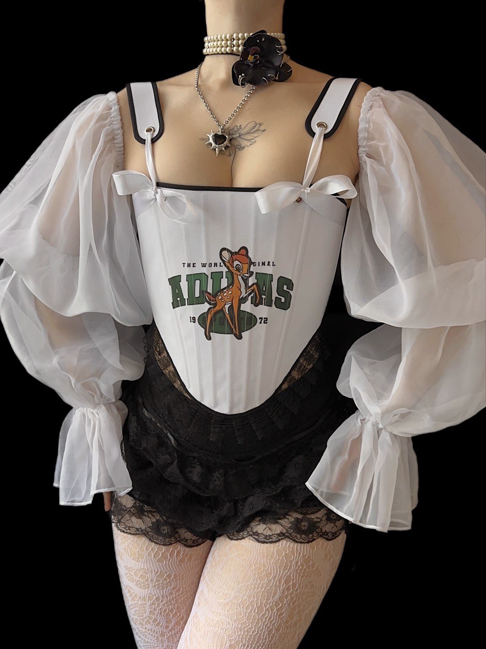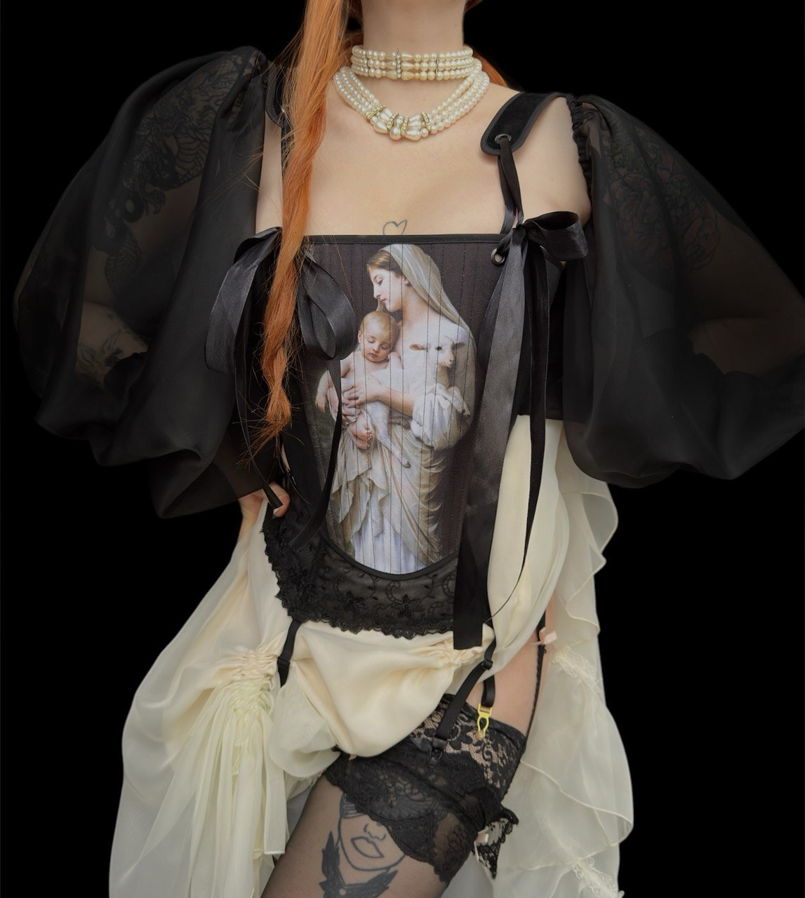 Корсет хорошо держит форму, утягивает. Подойдет для носки, как на голое тело, так и на второй слой. Бретели регулируются лентами или шнурками, что позволяет максимально удобно отрегулировать корсет по вашей фигуре. Спинка также затягивается лентами или шнурками.
